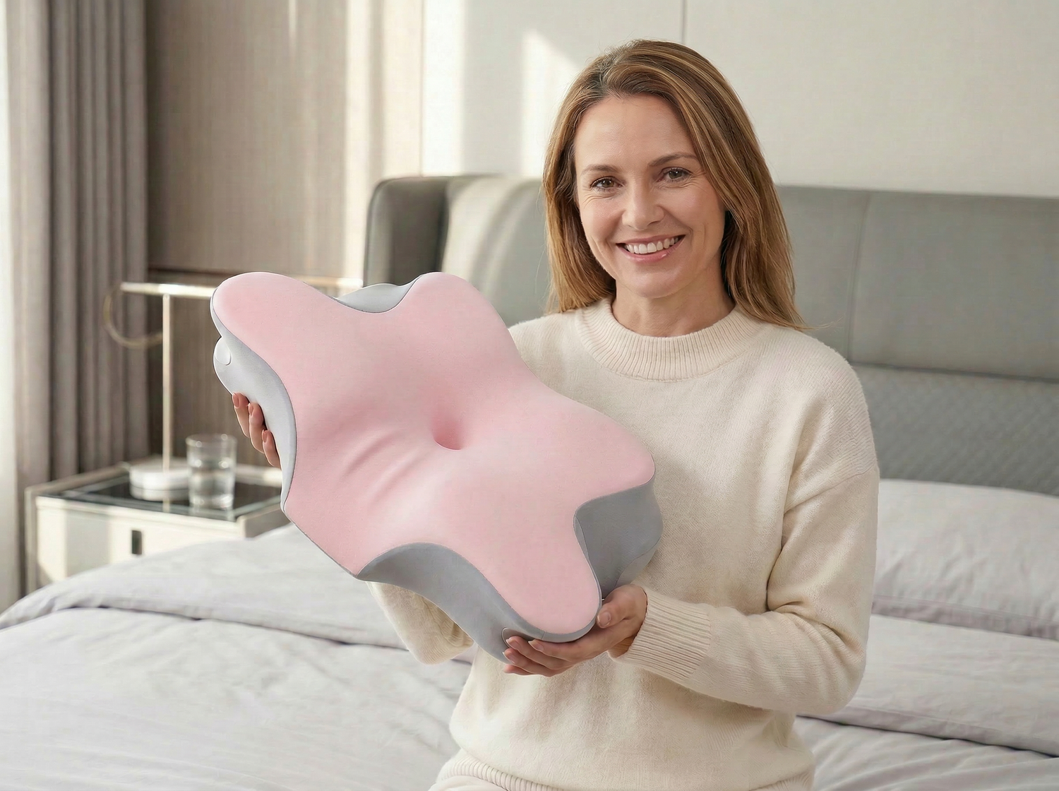 Ons vlindervormige kussen is speciaal ontworpen voor kinderen van 4 jaar en ouder. Door het hoofd en de nek voorzichtig in de juiste positie te brengen, helpt het mild tot matig snurken te verminderen dat wordt veroorzaakt door een slechte houding. Een eenvoudige oplossing om zowel kinderen als ouders een rustige, rustgevende slaap te bieden.
