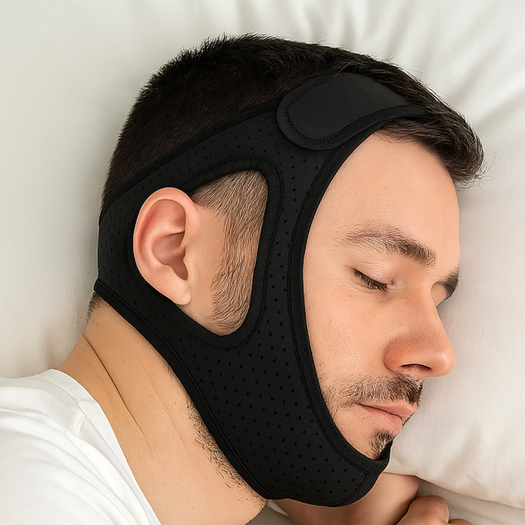 The Snorelux Anti-Snoring Strap comfortably supports the lower jaw to prevent the mouth from opening during sleep. By encouraging nasal breathing and maintaining a natural jaw position, it helps keep the airway open, reducing vibrations that cause snoring. The ergonomic design with adjustable fit ensures it stays in place all night, whether you're a side sleeper or back sleeper.